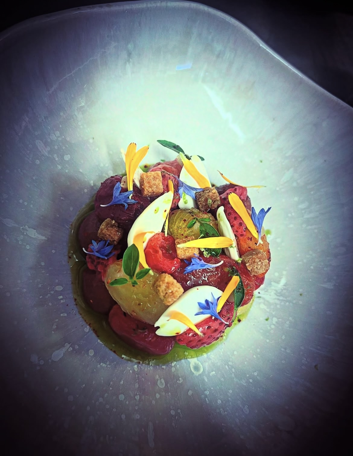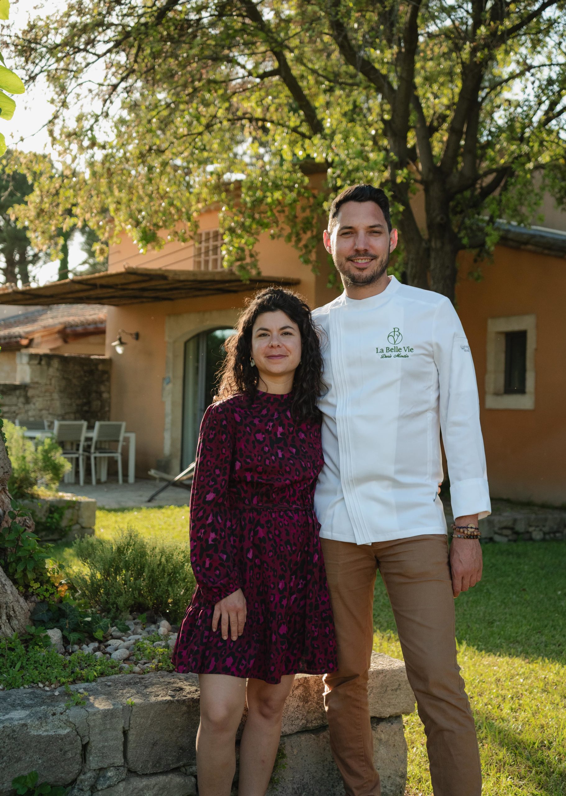C’est à Saint-Hilaire-d’Ozilhan, entre Uzès et le Pont du Gard, qu’ils réveillent La Belle Vie, XIXᵉ bâtisse ceinte de vignes et d’oliviers. Le couple y déploie sept chambres de caractère, dont trois pavillons indépendants, promesse d’une parenthèse hors du temps. Sous les platanes ou dans la salle lumineuse, le chef signe une partition végétale et marine, nourrie des maraîchers et vignerons voisins. Jus clairs, associations fines, hommage permanent au Sud : chaque assiette raconte le terroir autant que l’émotion. En salle, Joana distille un service attentif, élégant et sans prétention, prolongeant l’âme chaleureuse du lieu. Ainsi naît La Belle Vie : adresse confidentielle mais incontournable, où hospitalité, territoire et goût résonnent à l’unisson.