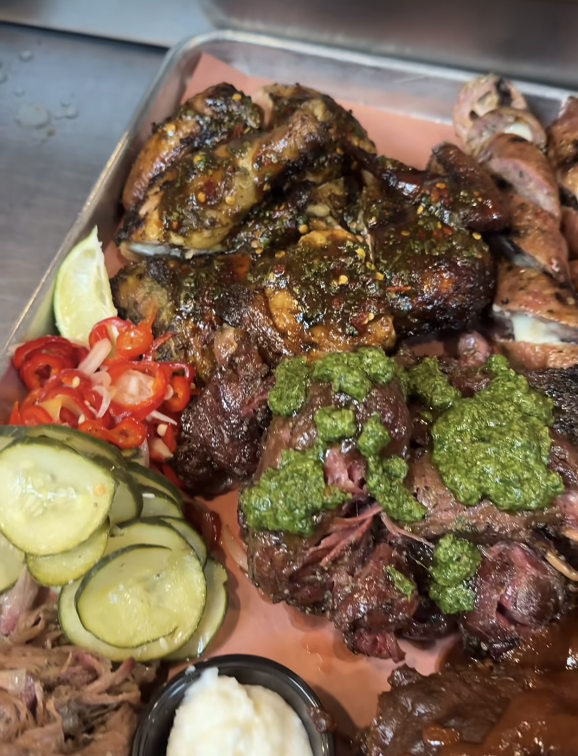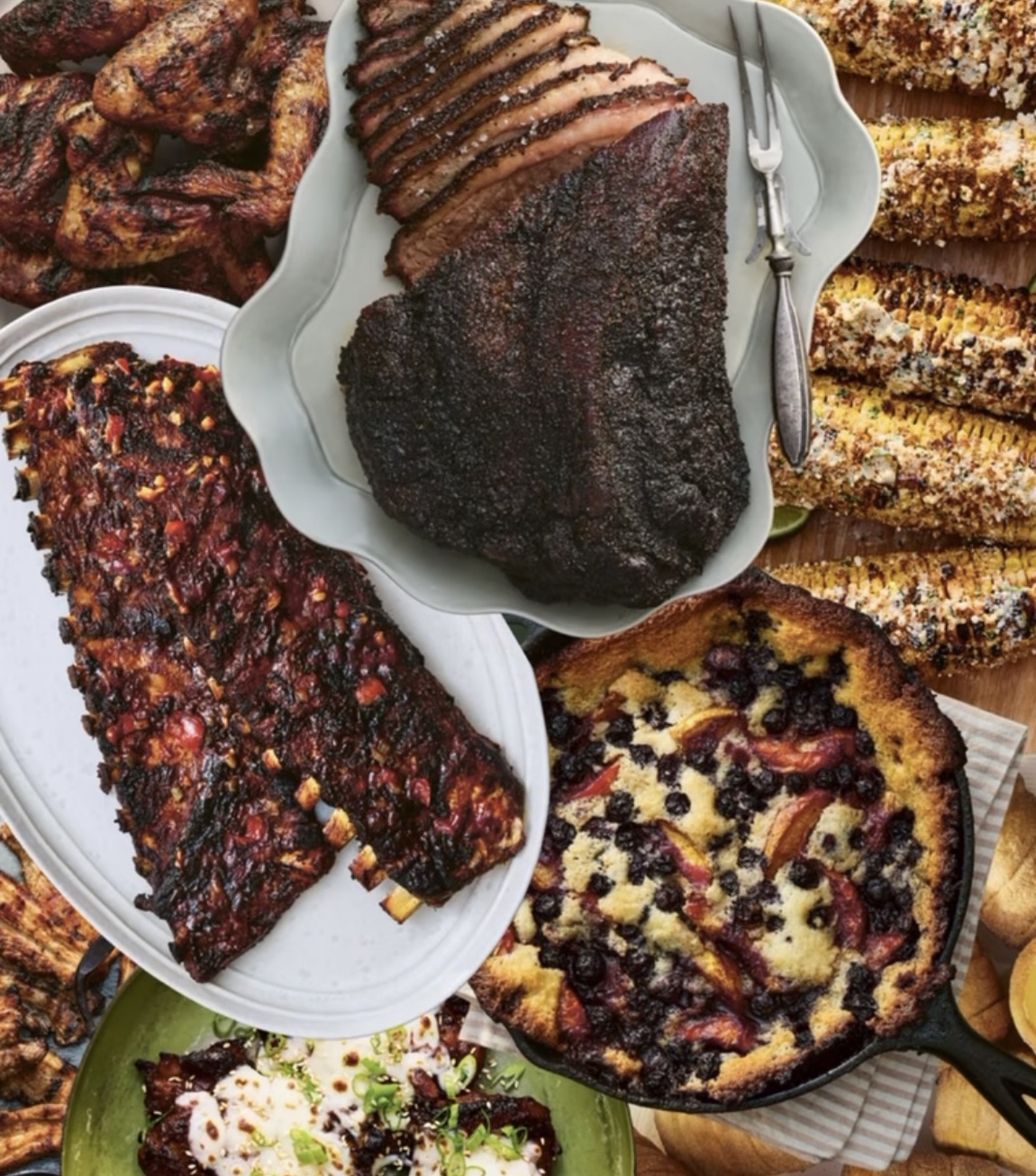 Chapitre 2 – Les plats principaux : Plat de côtes argentin – Plat de c.tes coréen – Burnt ends – Rouleaux de boeuf grillés – Poisson grillé angolais – Yuca grillé et sauce mojo – Poitrine de porc coréenne -Porc effiloché – Sandwichs cubains – Joues de porc fumées et salsa verde – Méchoui d’agneau – Fajitas de Poulet – Ailes de poulet fumées et frites – Poison grillé malaisien – Poulpe grillé portugais – Saumon fumé à l’érable – Poireaux grillés et sauce romesco – Légumes rôtis au charbon de bois – Sandwichs, tacos, hamburgers…