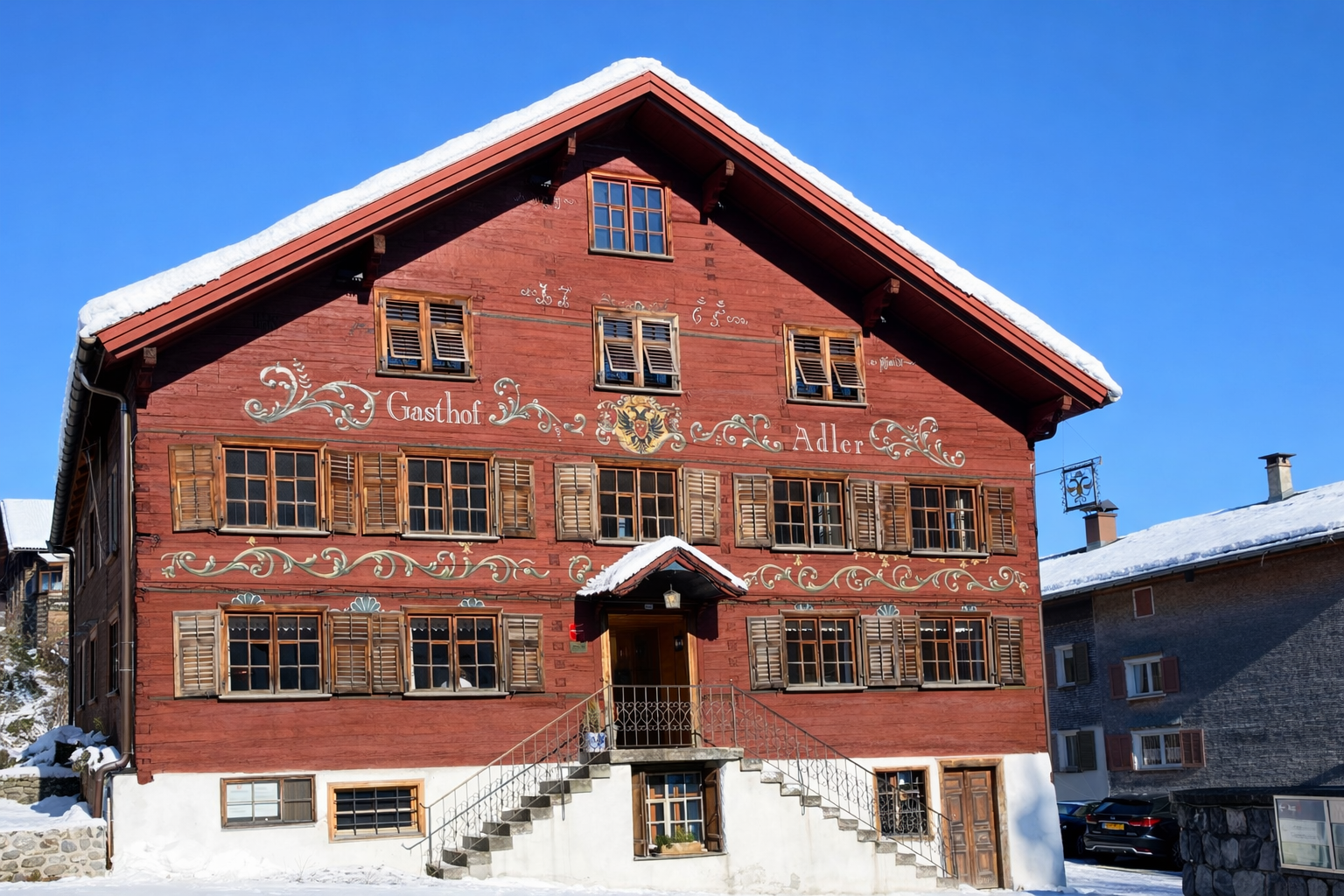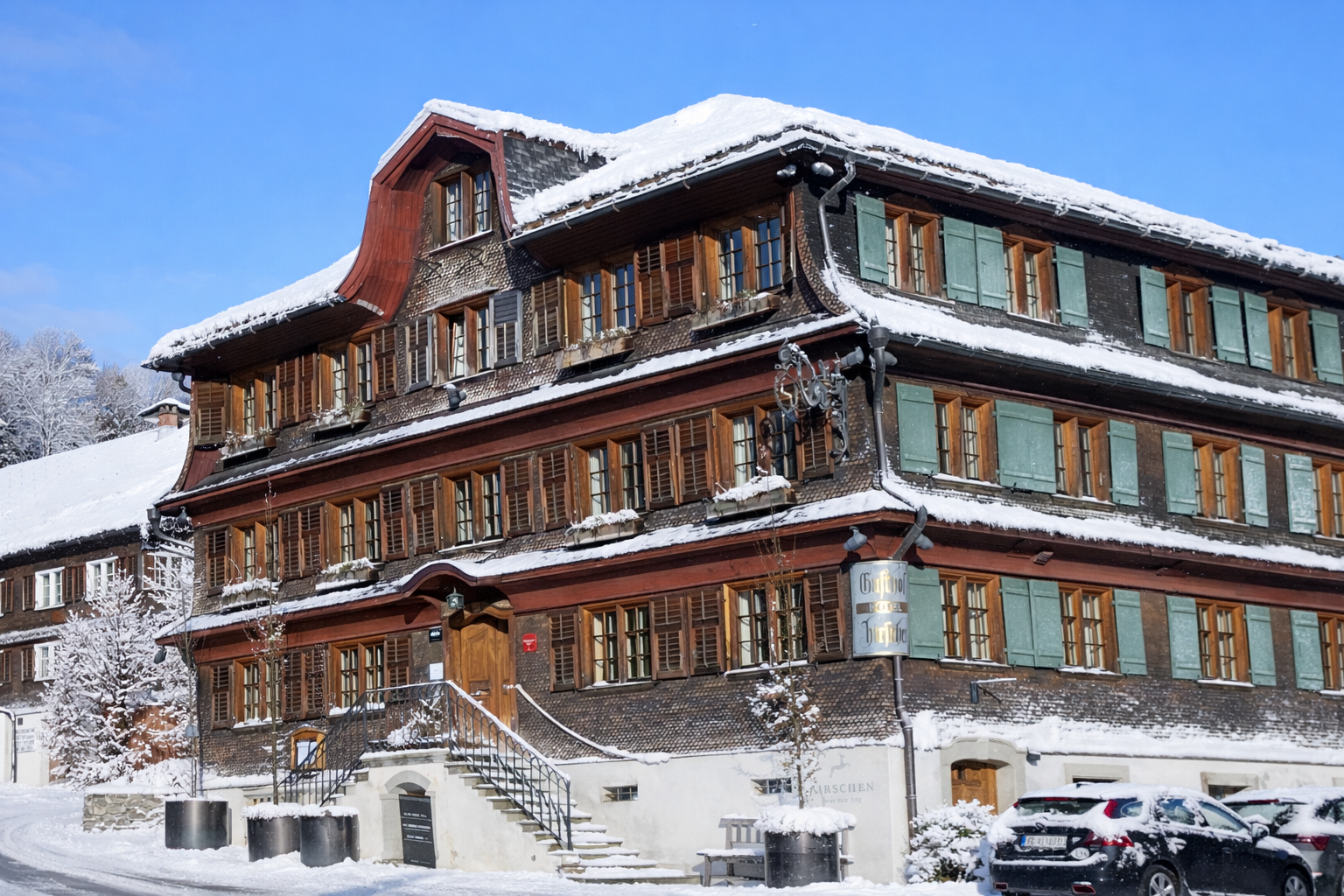 Il est certainement un des hôtels les plus typiques du Bregenzerwald. Il est toujours depuis 10 générations entre les mains de la même famille. Les chambres les plus anciennes créées en 1755 gardent de leur origine un style tout à fait traditionnel. Salon et salle à manger rivalisent de charme, enroulées dans leurs plafonds à caissons de bois et leurs murs cernés de moulures.