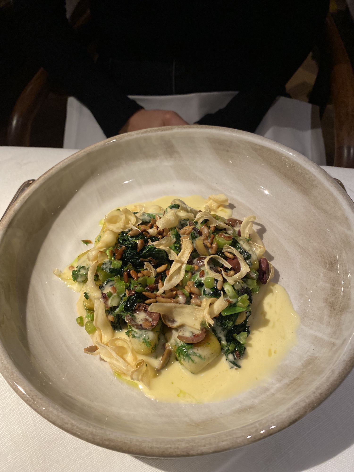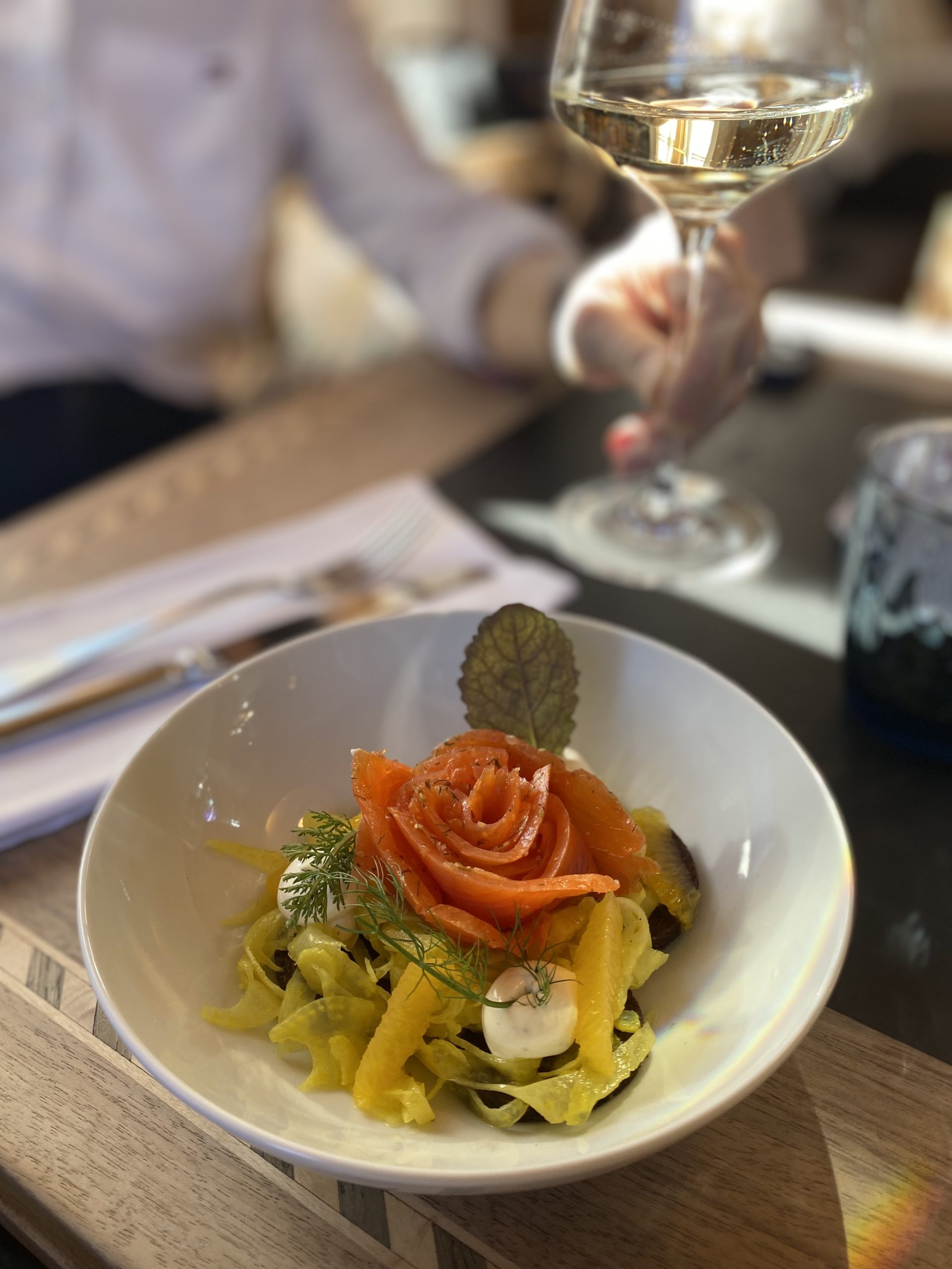 “ Je fais ici une cuisine locale, légèrement modernisée quand même, on ne m’attendais pas pour une table classiquement autrichienne !…j’aime beaucoup la cuisine asiatique et je me sers assez souvent du Miso . Je fais aussi mes garum pour rehausser mes plats . “Les assiettes de Jonathan, jouent dans un registre créatif inattendu et là ou l’on s’attendrait à demander des Spaetzle dans ce cadre on ne peux plus traditionnel, ce sont des Gnocchis, assortis de feuilles de brocoli-rave, d’olives, de racines de persil, de graines de tournesol passés dans un beurre blanc ou encore d’un carpaccio d’omble chevalier (local) piqué de fenouil, de myrtilles fermentées et d’un filet de citron …Quand à Madame, Raphaela Burger, c’est elle en tant que chef pâtissière qui régale les hôtes avec ses desserts plus classiques certes mais gourmands à souhait ! Une adresse à découvrir pour les amateurs de surprises.