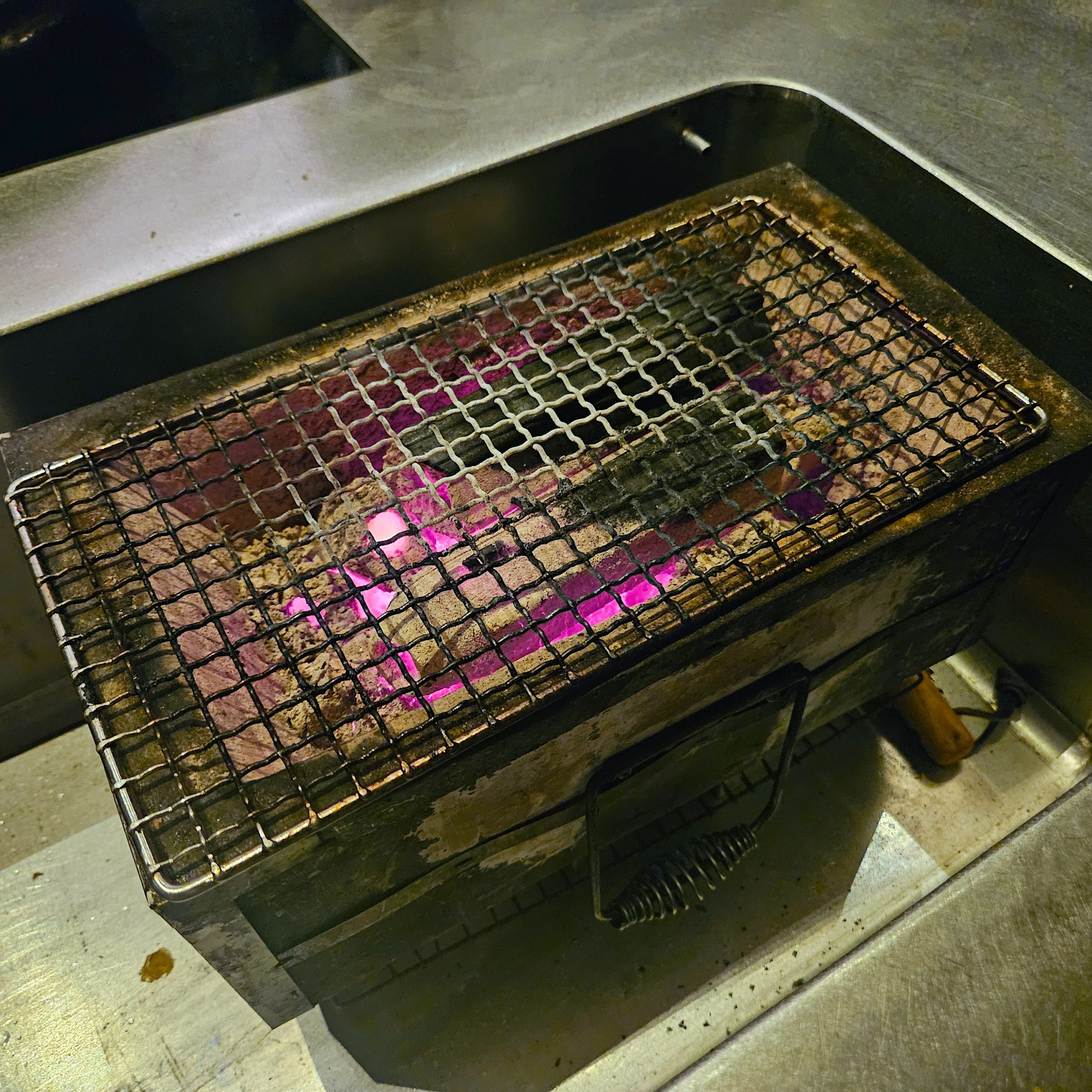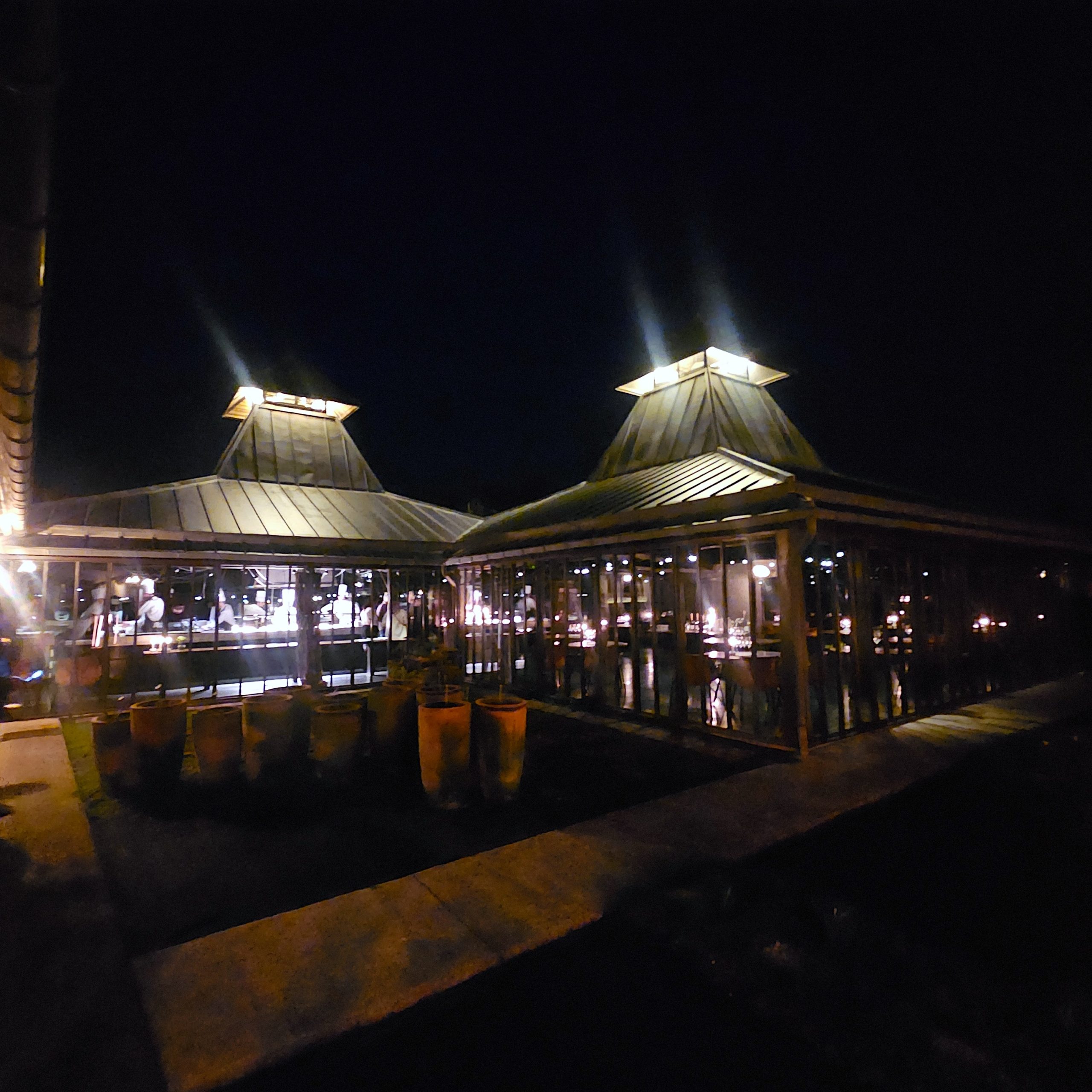La salle principale fonctionne comme une grande cabane ouverte sur l’extérieur. Le métal, le bois, les volumes bruts composent un décor presque théâtral où l’on perçoit déjà l’esprit de la cuisine qui va suivre : libre, instinctive, profondément personnelle.