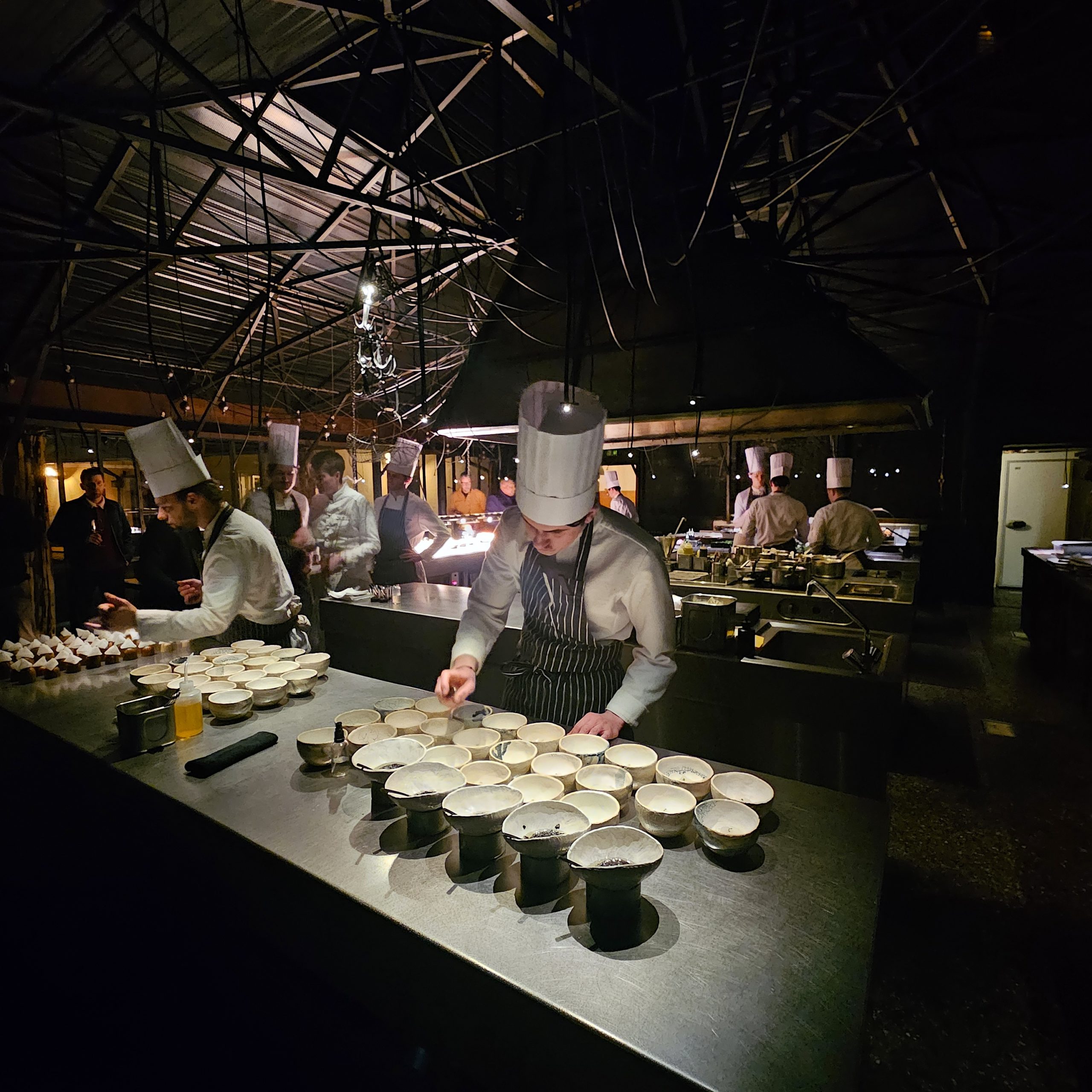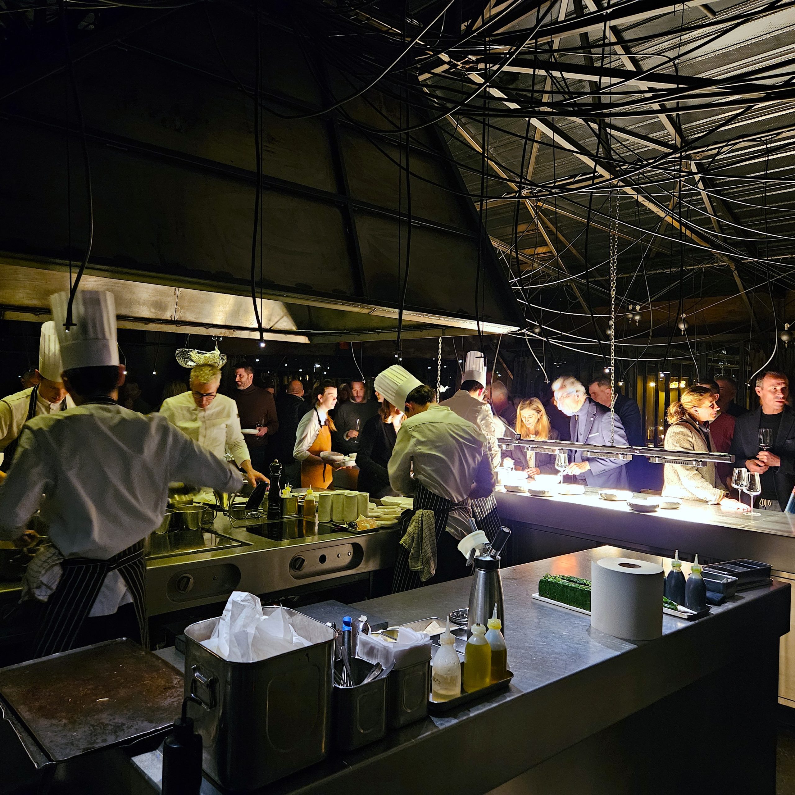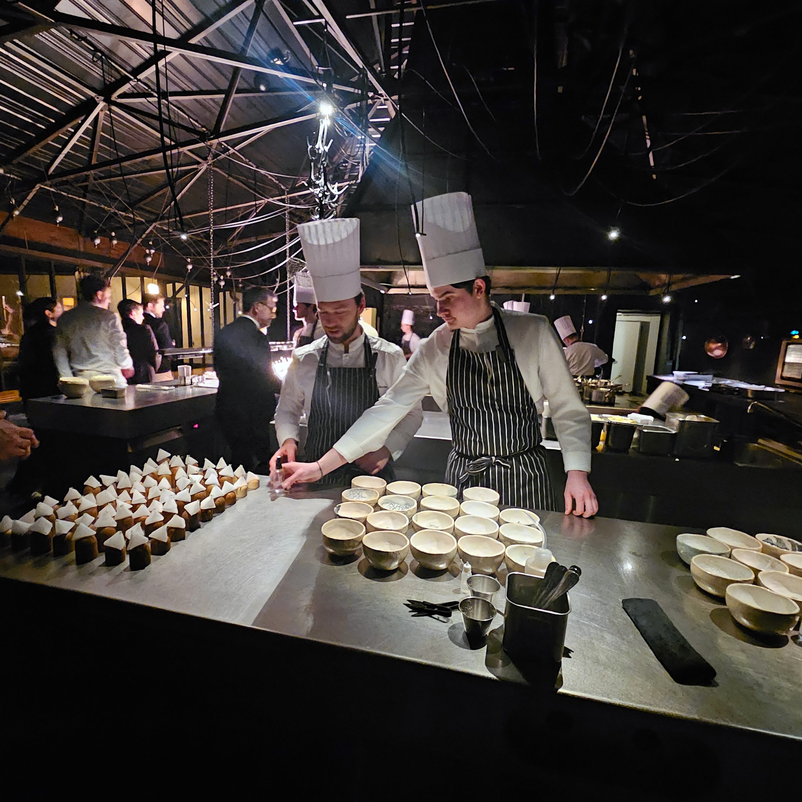 Le chef est ses équipes avait totalement ouvert les portes de son établissement pour recevoir une centaine d’invités dont 80 chefs de cuisine. Les invités pouvaient disposer de l’ensemble de l’espace pour découvrir l’univers atypique du chef, et naviguer dans toutes les pièces pour déguster les multiples merveilles préparées pour l’occasion.