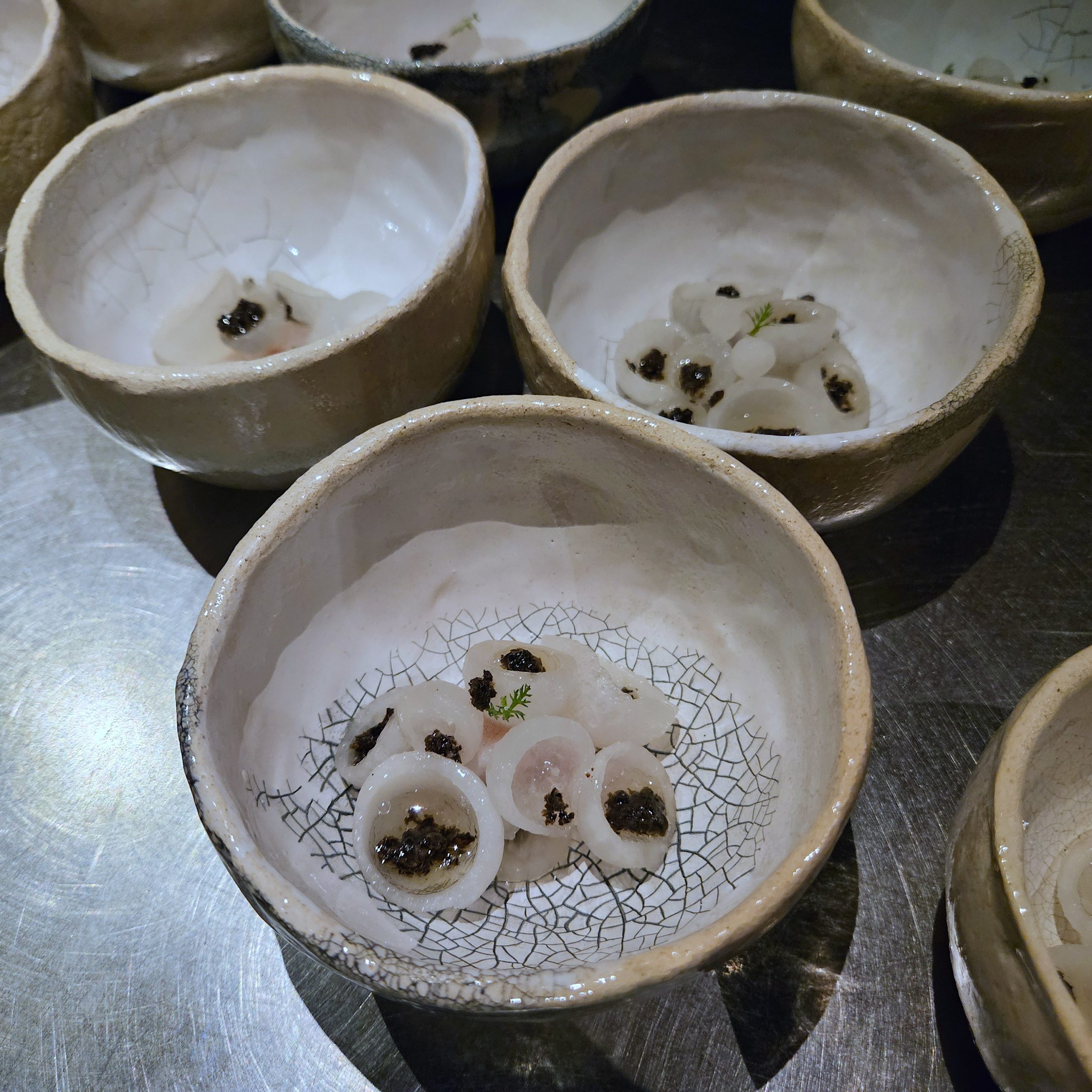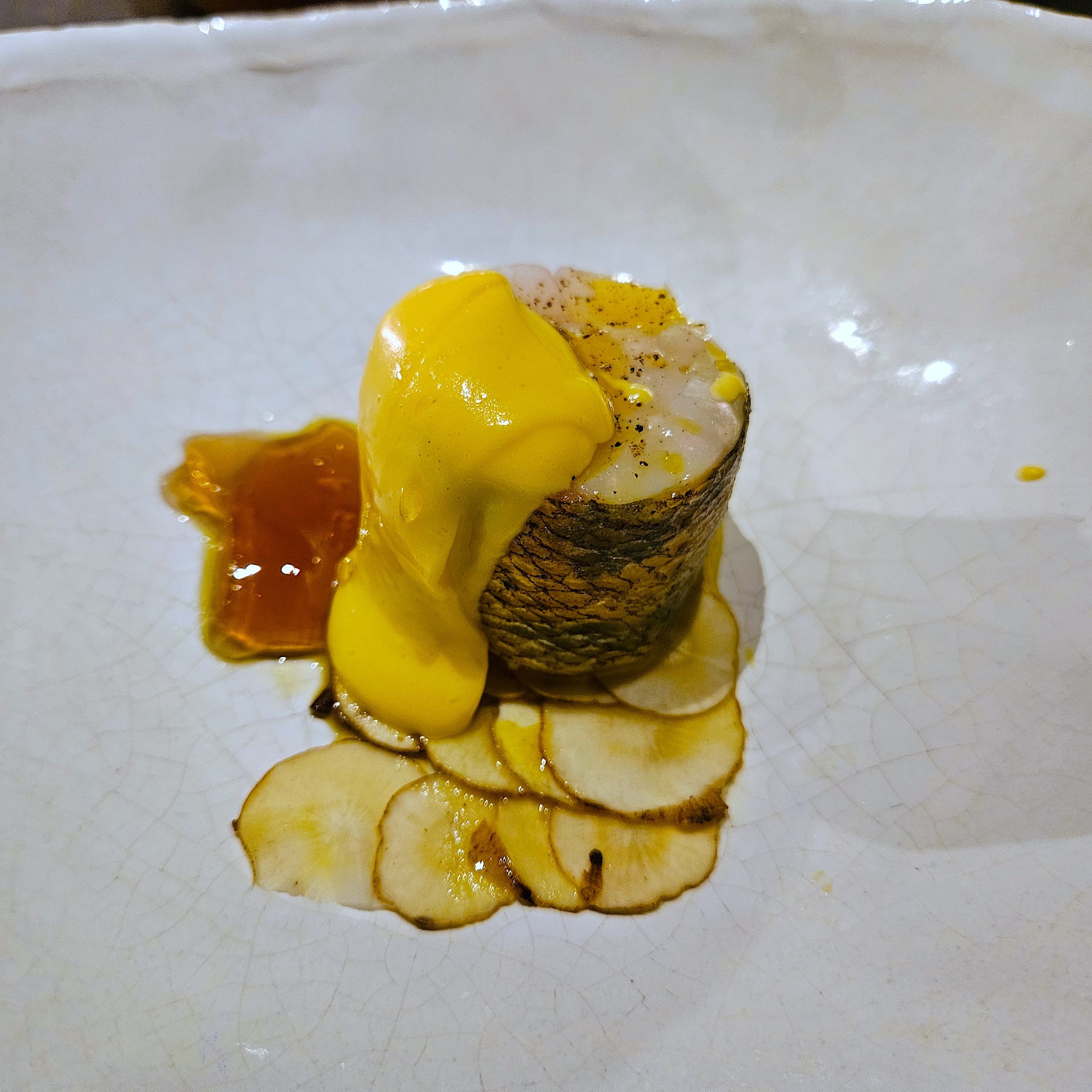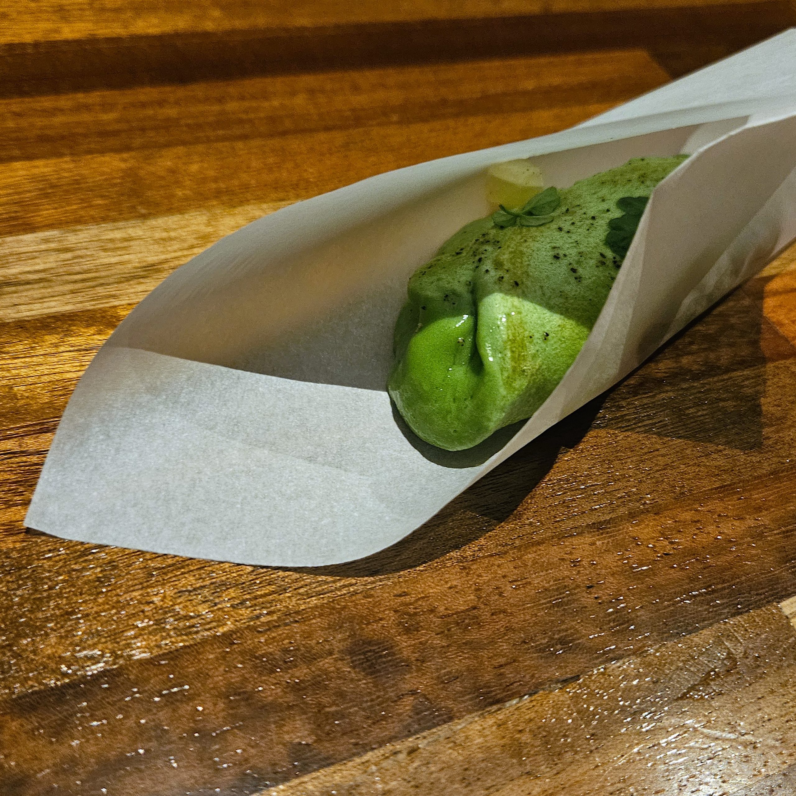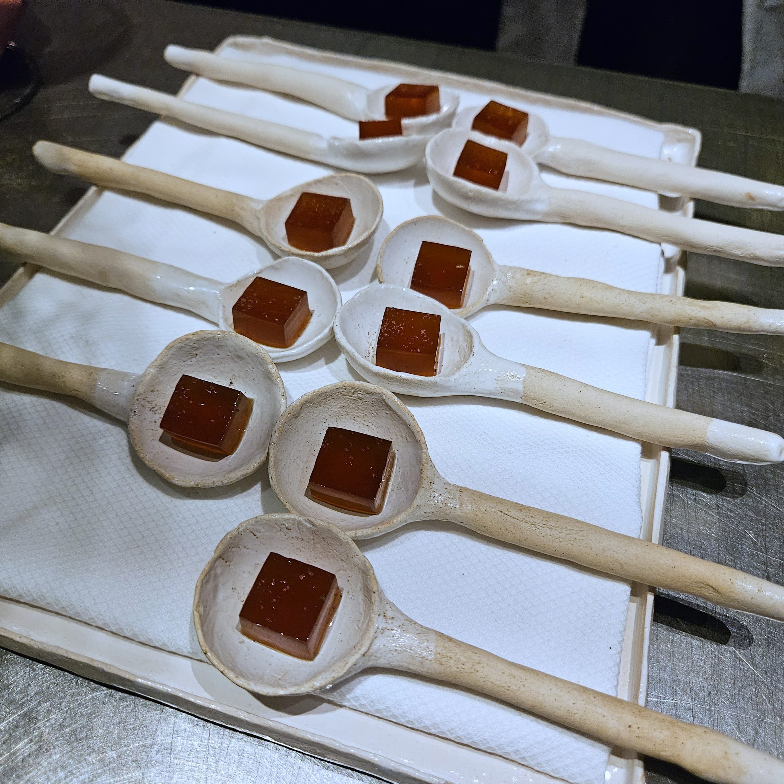 Lors de cette soirée ce dîner à la forme improbable se déroula comme une succession de scènes. Les plats arrivèrent en petites séquences, parfois surprenantes, comme des fragments d’une histoire que le chef raconte autour de ses fourneaux.