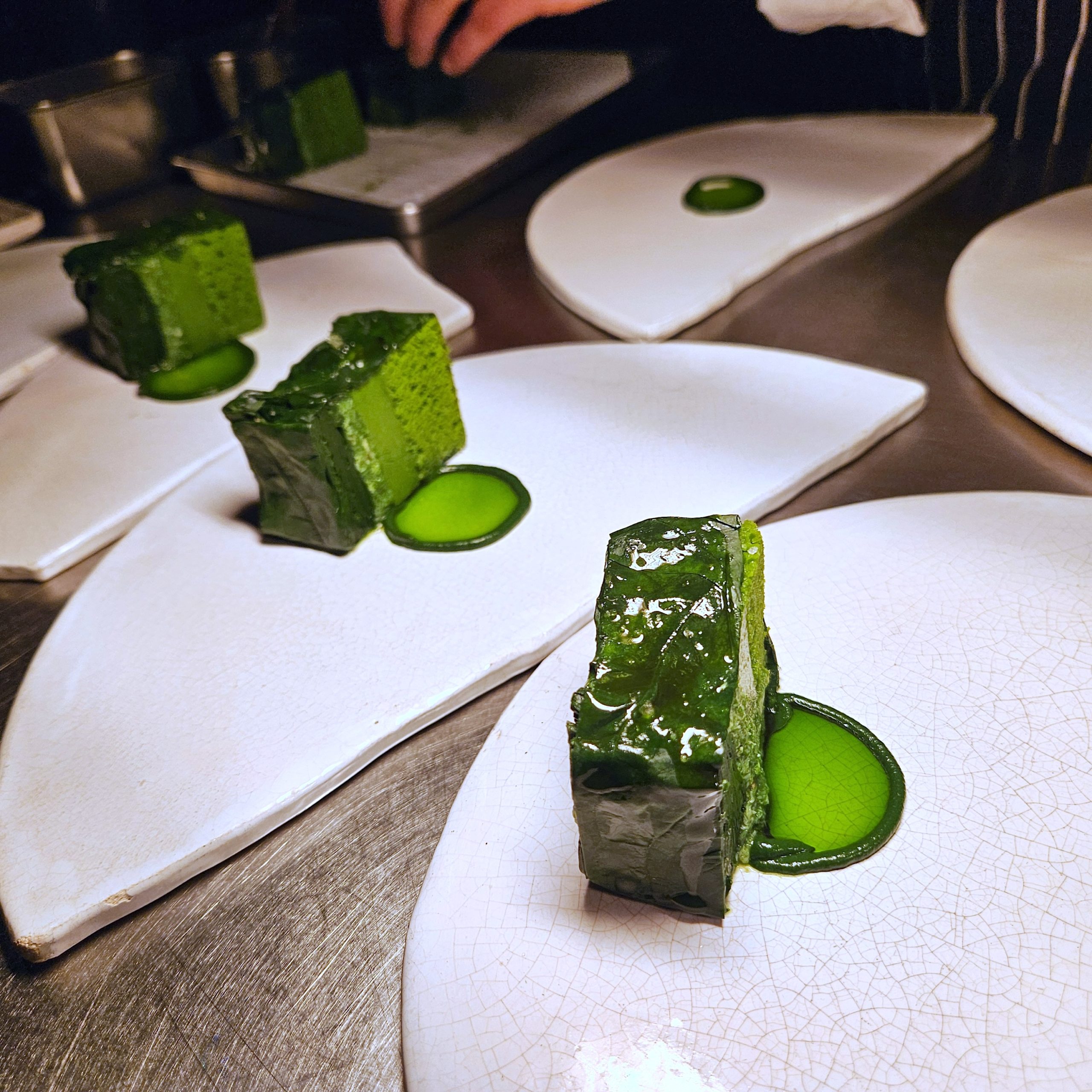 La mer s’invite également dans des assiettes marquantes, jus de coquillages et herbes marines, compositions autour des algues et des produits iodés qui évoquent les rivages proches de la Manche.