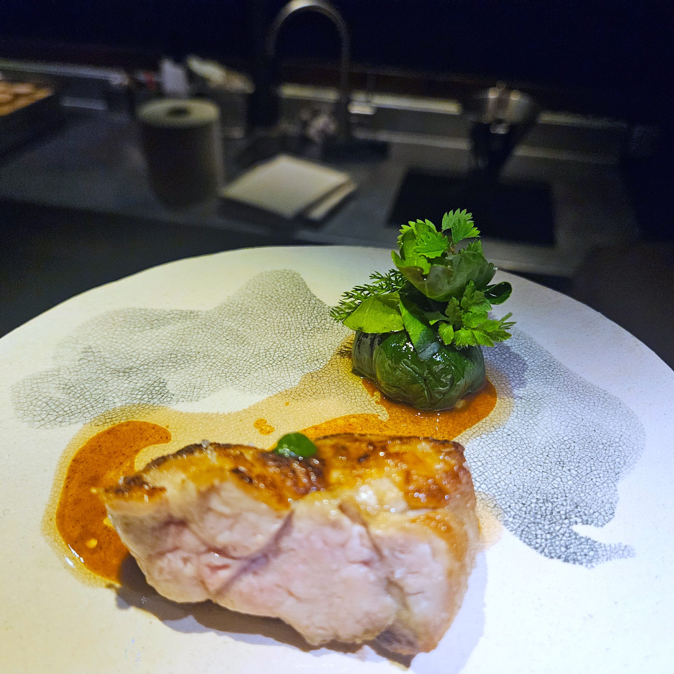 Au fil du repas, nous comprenons que La Grenouillère n’est pas seulement un restaurant gastronomique, c’est un lieu d’expression où la cuisine dialogue avec l’architecture, la nature et l’imaginaire du chef.