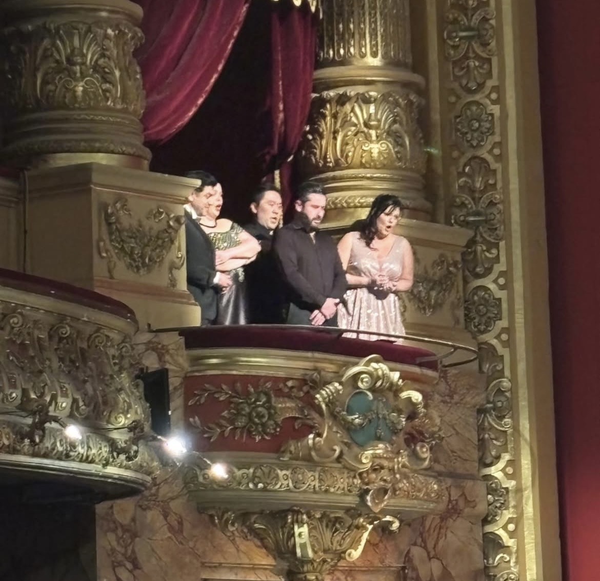 Les airs de Verdi et Gounot font vibrer ce théâtre à l’italienne élégant , coiffé d’une coupole somptueuse qui ajoute l’émotion ressentie dès les premiers pas dans ce sanctuaire de la voix. Les lustres suspendus inondent de lumière les stucs délicatement colorés, le velours des sièges et des rideaux, la scène et les discrètes loges toutes de rouge vêtues. Le parquet ancien murmure, se souvient des toutes les grandes voix prestigieuses qui l’ont foulé, des voix venues d’ici et d’ailleurs qui ont fait fait vibrer les murs de l’Opéra. Hier comme aujourd’hui des moments suspendus habitent le lieu.