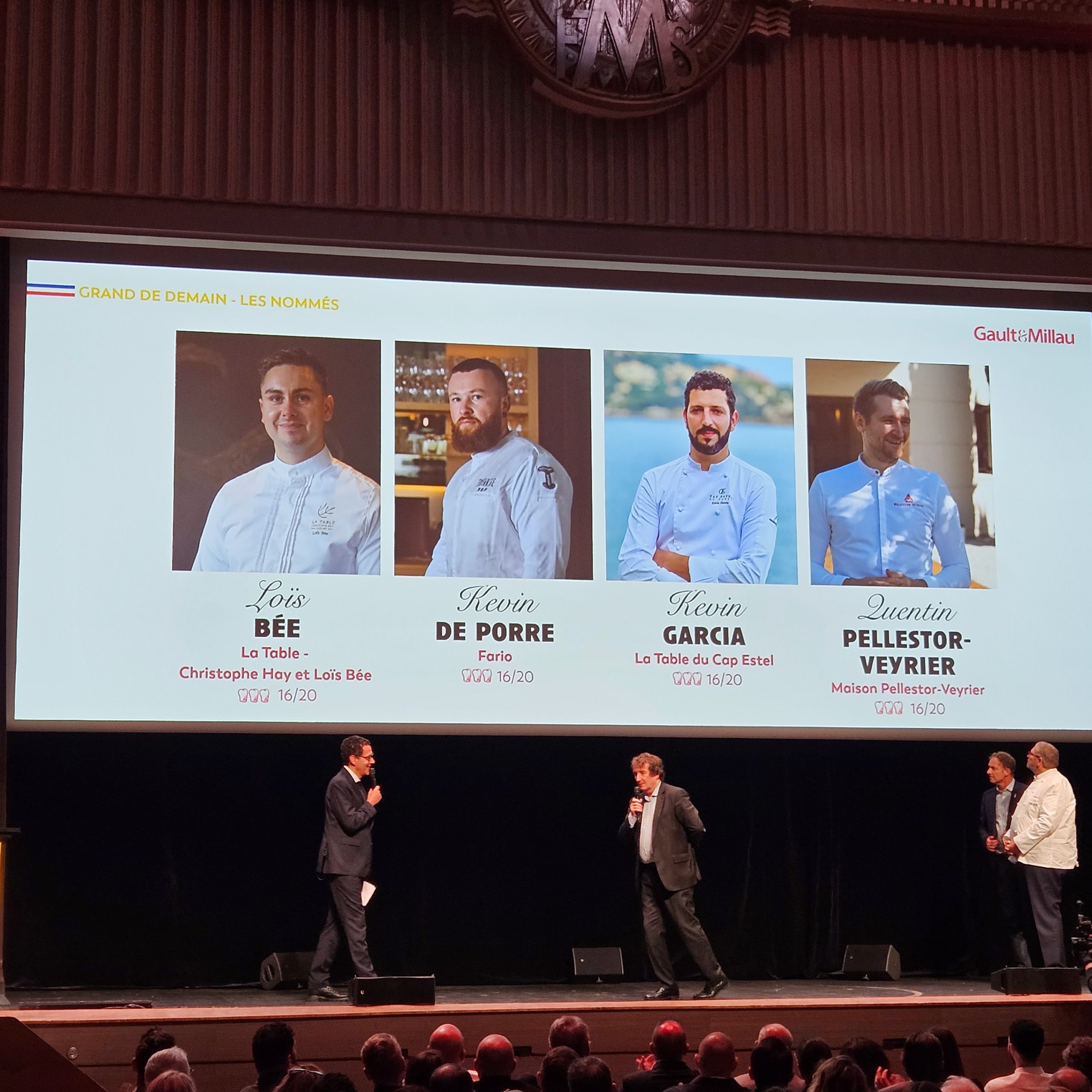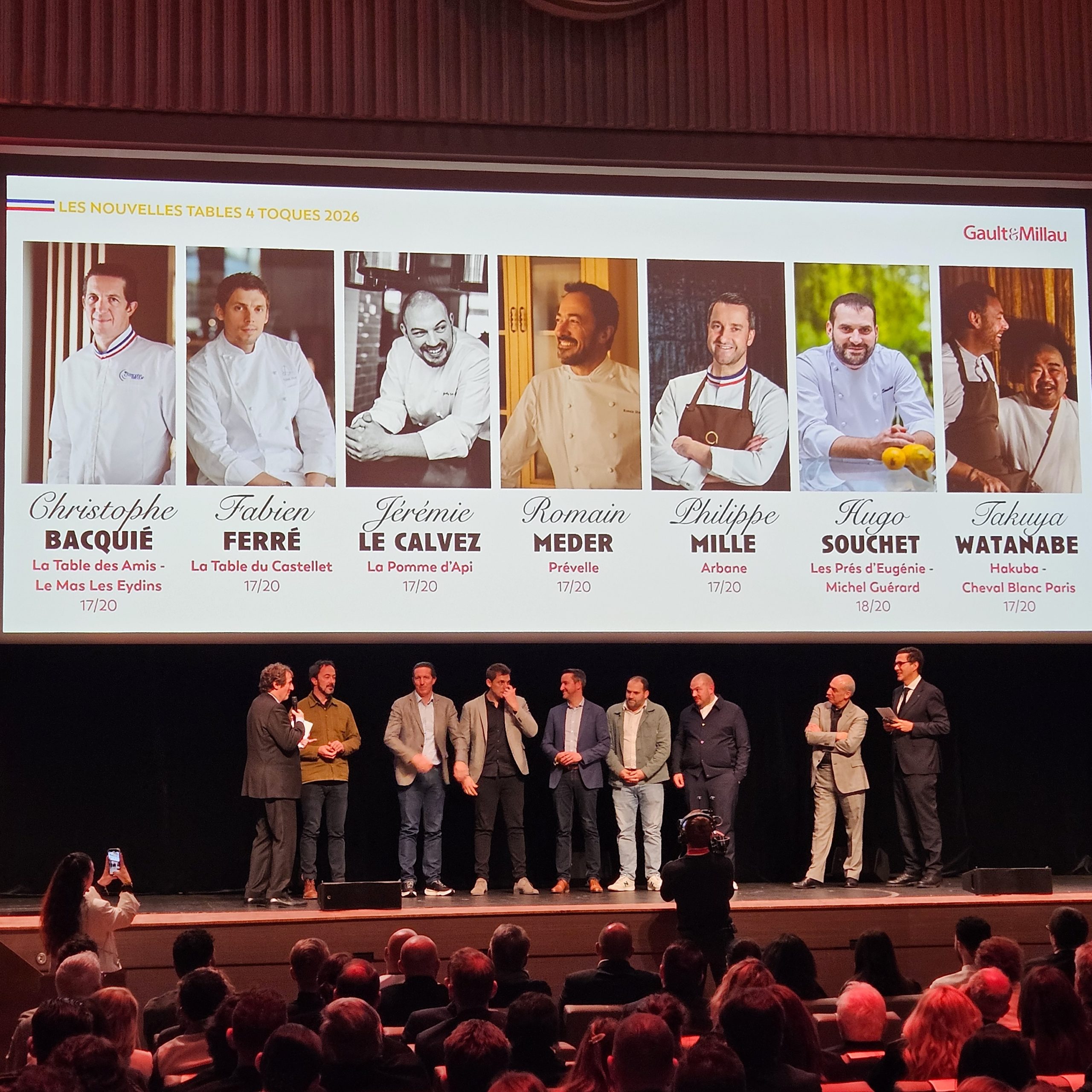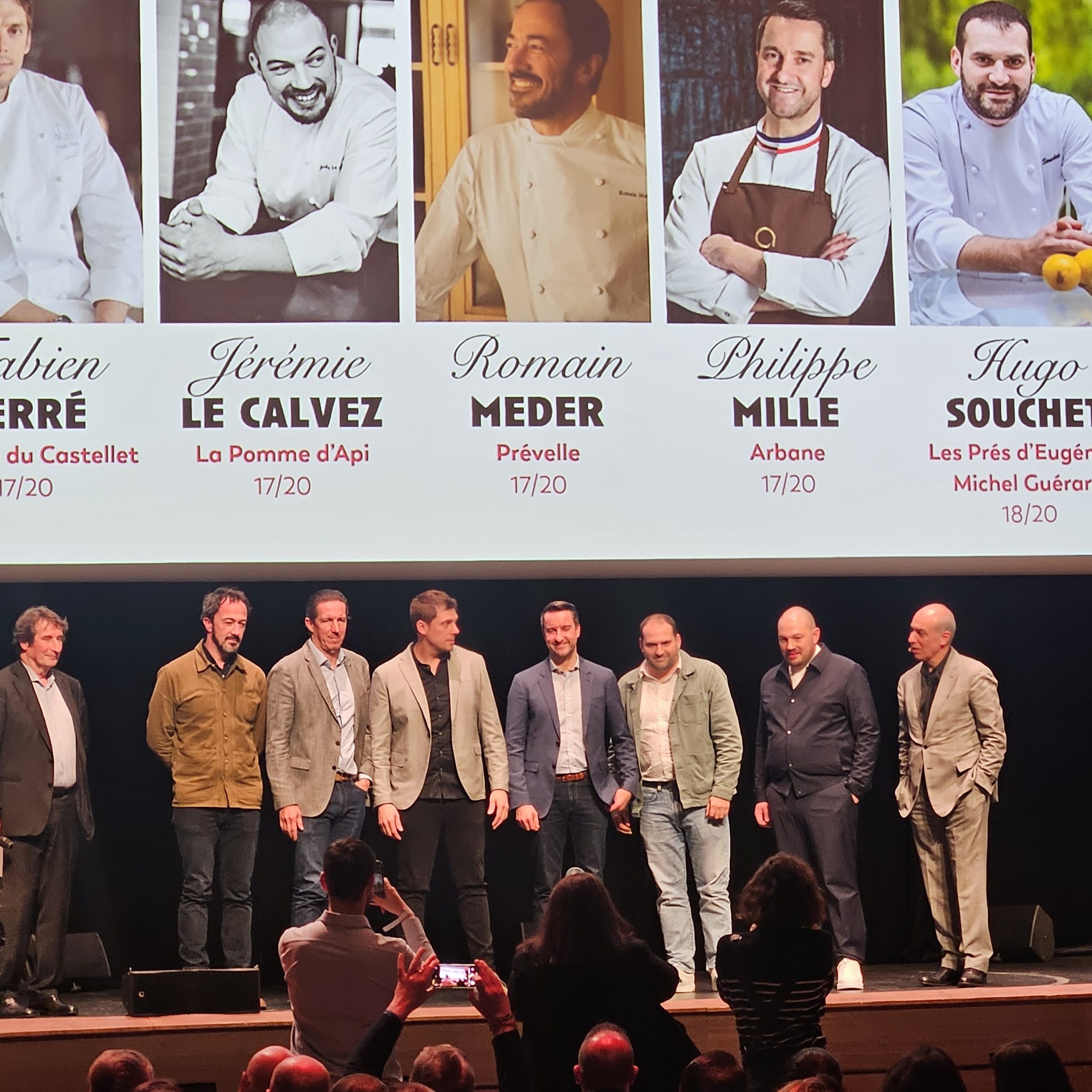 Plusieurs des chefs titrés les années précédentes montent sur scène, on y voit Frédéric Anton, Hugo Roellinger, Christophe Bay et Yoann Conte…