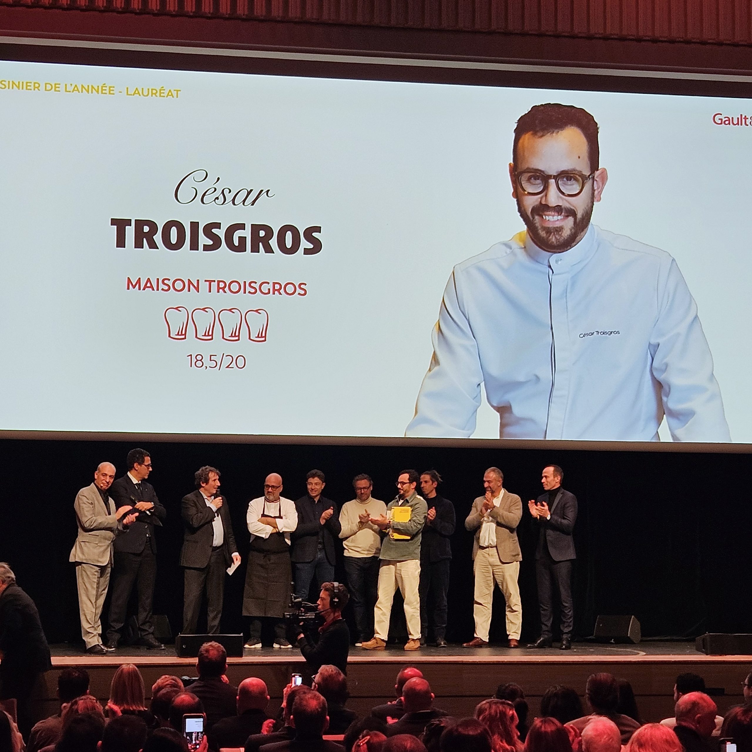 Le cuisinier de l’année est CESAR TROISGROS – Arrière petit-fils, petit-fils et fils de chefsCésar a grandi dans les casseroles de son père, mais il a aussi. La Méditerranée, l’Italie de sa grand-mère, le Japon que son père et de son grand-père coulent dans ses veines mais aussi le sang de la liberté, de l’épanouissement personnel, d’un nouveau chemin à tracer. Le voilà dans la lumière totale, qu’il saura furieusement bien partager en famille.