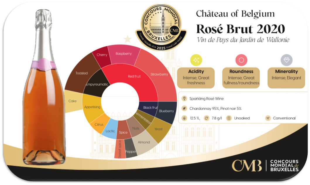 Appréhender le style de la cuvée, ses principaux arômes, ses caractéristiques sensorielles, voilà ce que permet désormais le Concours Mondial de Bruxelles grâce à deux outils clairs et de compréhension immédiate : une roue des arômes et, nouveauté 2026, une fiche de dégustation lisible et compréhensible par tous car composée de pictogrammes indiquant les principaux arômes (type de fruité, arôme dominant, arôme secondaire…), la structure (rond, équilibré, qualité de la bulle…), l’intensité mais aussi les cépages, des idées d’accords mets et vins, un indicateur de prix peut être également présent. Tous ces repères viennent expliquer la médaille obtenue mais surtout fournir des repères à celui qui n’a pas encore dégusté.